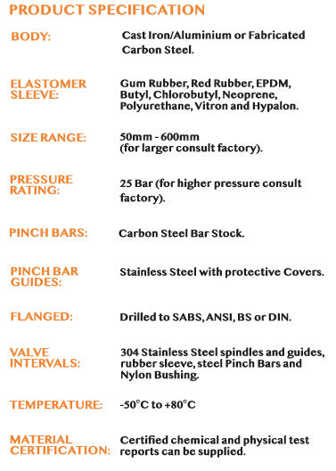 DUAL‘s Pinch Valve consists of a tough, but flexible full bore sleeve, which forms part of the pipeline. The valve is closed mechanically via movement of the pinch Bars located on opposite sides of the sleeve.The core of the Dual Pinch Valve is the sleeve – this sleeve is reinforced with high-strength fabric. The valves are well suited for on/off and throttling control applications where scale build up is a problem.